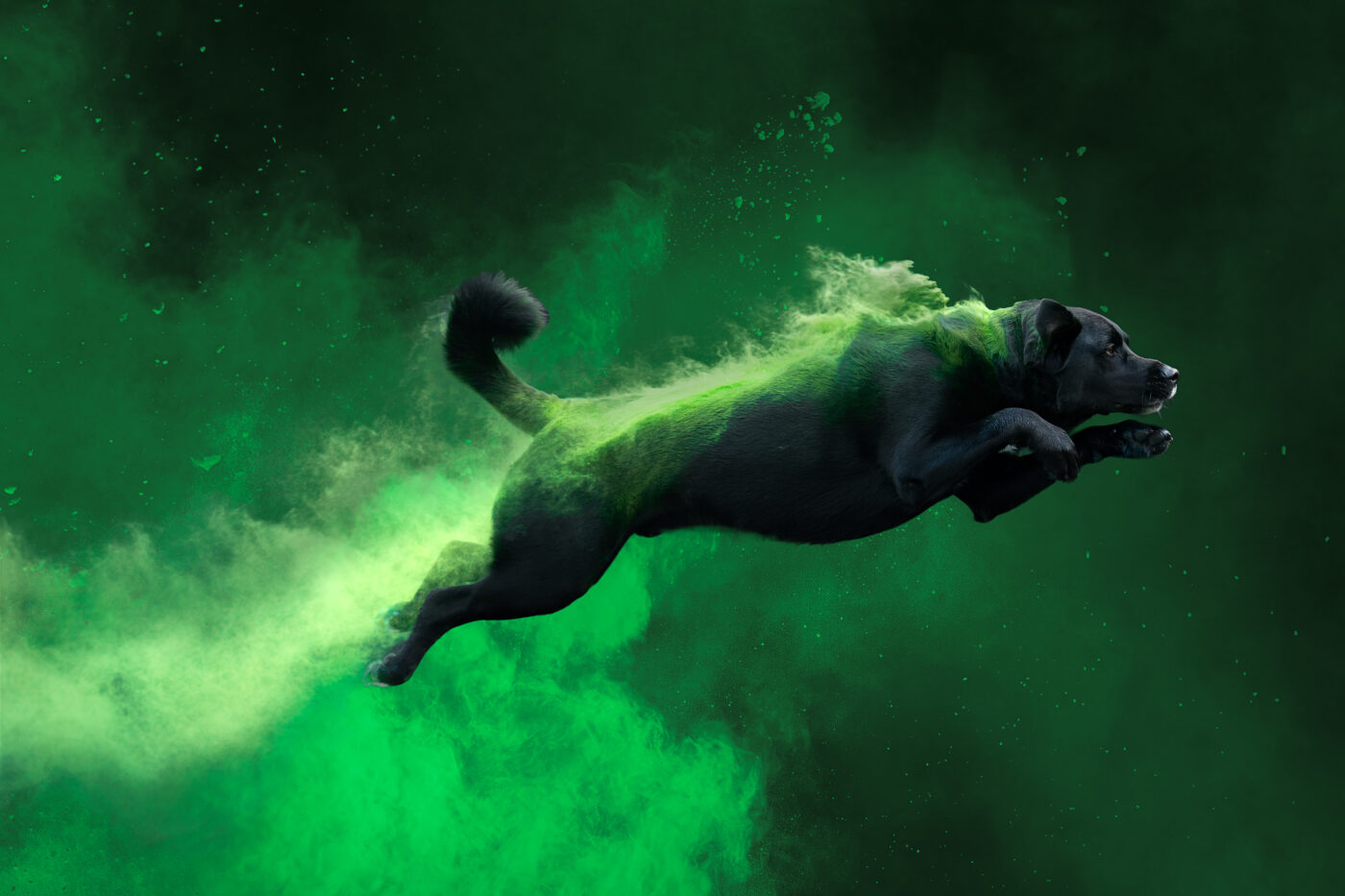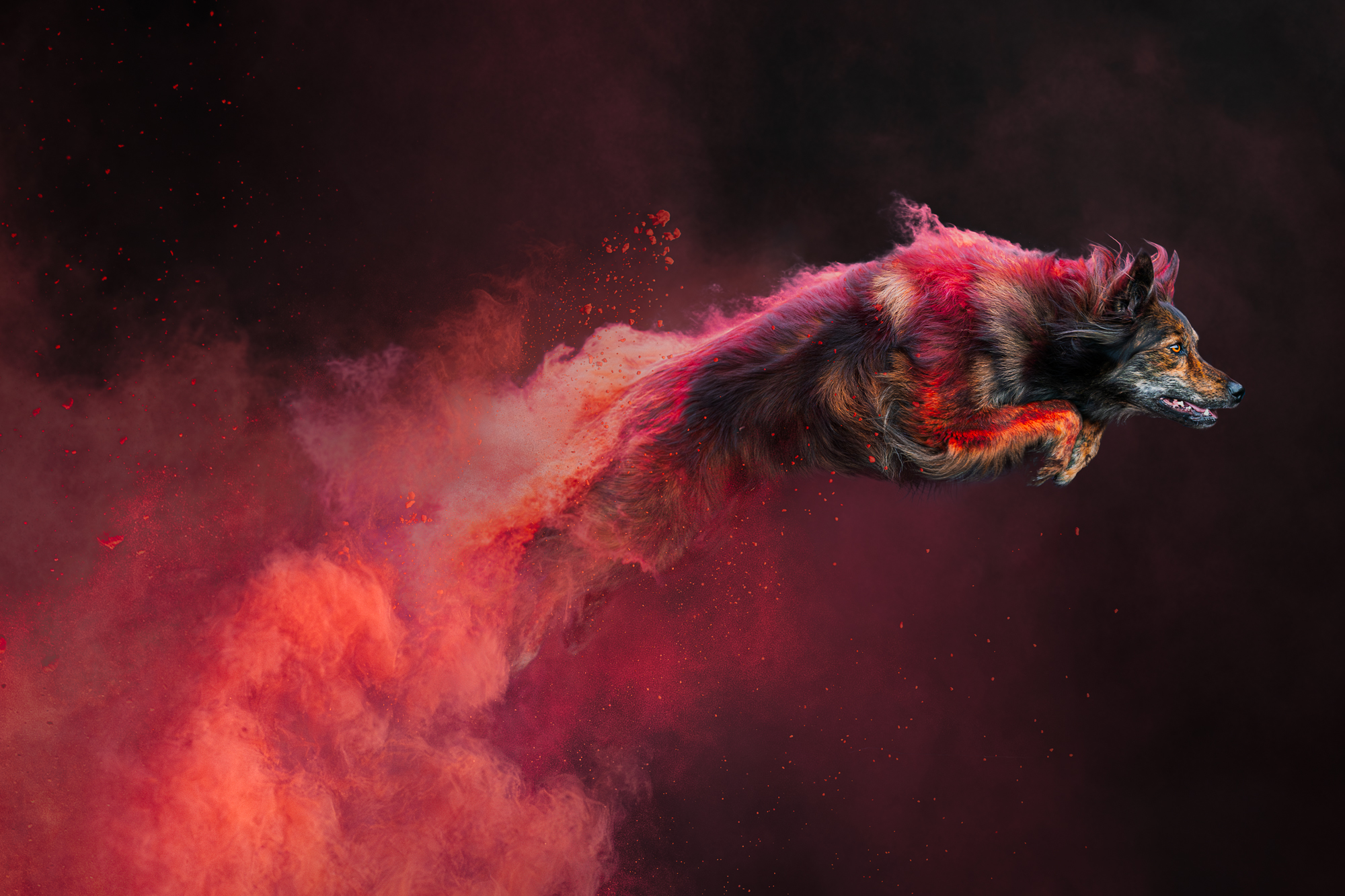 Holipowder fotoshoots zijn een vorm van actiefotografie, en daarbij is het zo dat het altijd het mooiste resultaat geeft wanneer de hond nog niet moe is. De kunst is daarom om de shoot met zo min mogelijk sprongen te voltooien.