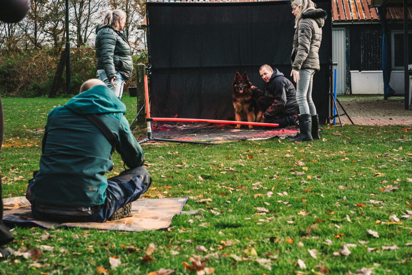 Wanneer je arriveert op de locatie, controleer dan voordat jij jouw hond uit de auto haalt dat er op dat moment niet gefotografeerd wordt. Wanneer er wel een shoot gaande is, wees dan welkom om alvast even te komen kijken hoe het werkt. (zonder hond)